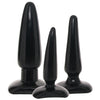 This trio of classic PVC plugs starts off small and ends large, letting work your way up. Each is firm and easy to control with a big, safe wide base, while being pliable enough to position perfectly. Use a good water based lube with the Kit, and enjoy!