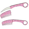 The comb knife features a karambit design, providing a secure grip and enhanced control. Constructed from ABS/nylon fiber, this tool is virtually unbreakable, making it a durable and reliable option. The ring at the bottom of the handle allows for easy attachment to your purse or backpack, ensuring accessibility and convenience. Whether you need to comb your hair or protect yourself, this dual-purpose tool has you covered.