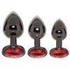 This trio of weighty, ultra-smooth aluminum plugs is just the right kind of unsettling. Whether you're brand new to backdoor play or a fearless stretch enthusiast, there's a plug for you: small, medium, or large. Each one flashes a glowing red evil eye from the base—so your partner gets an eyeful while you're getting, well, full.