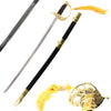 The Blade of the sword is HQSS stainless steel featuring an integrated bloodline. The scabbard of the sword is leather wrapped over steel. The scabbard ends with a steel end cap and begins with a steel scabbard throat. The scabbard also features two hanging steel rings for carrying or hanging the sword. The guard of the sword is a full wrap guard with the CS emblem. The handle of the sword is leather wrapped with golden twine, and ends in a detailed steel pommel. The blade is detailed scroll work imprinted onto the blade with the CSA emblem at the ricasso. This sword is a respected classic and looks great in any room of the house. The steel rings make it easy to hang and the strong stainless steel construction makes this sword strong enough to be a lifetime keeper.