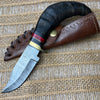 Our high-end Damascus Steel Custom Handmade Well-balanced Hunting Knife is hand-forged Damascus steel; pattern-welded in-house combining 1095 tool steel and 15N20 nickel tool steel. The hardness of this Damascus blade is rated at 55 to 58 HRC on the Rockwell scale which holds the sharpness for a long time.