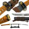 Experience the enchanting power and elegance of the Dance of the Water Dragon 1060 Handmade Katana. This exceptional sword is meticulously crafted with a blade forged from high-quality 1060 carbon steel, expertly clay tempered and hardened to reveal a unique natural hamon that sets each piece apart. The blade is finely sharpened and honed to a razor's edge, ensuring optimal performance. Fitted with a stunning brass guard depicting a majestic water dragon gracefully swimming through the ocean's depths, this katana embodies the spirit of fluidity and strength. The handle is wrapped in rich brown cotton, providing a comfortable and secure grip for wielding. At the top, a striking pommel adorned with an intricately designed dragon adds a captivating detail to this masterpiece. Housed in a beautifully textured black scabbard finished with brown wrapping, this katana is as much a work of art as it is a functional weapon. Each purchase comes with a wooden silk-lined gift box, a display stand, a cotton bag for storage, a cleaning kit, and a certificate of authenticity, making it an ideal gift for collectors and martial artists alike. With an overall length of 42 inches, a blade measuring 28 inches, and an 11.5-inch handle, the Dance of the Water Dragon katana embodies the spirit of the warrior.