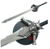 Our masterfully crafted real sword is inspired by Dante's sword, including its stainless steel blade and iconic guard. This metal replica of the Dante sword is 130 cm long and comes with a wooden Devil May Cry display plaque. The blade is blunted and an ideal home decoration or cosplay photoshoot accessory.