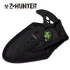 Z-Hunter - Push Dagger 5" overall. 2 1/2" partially serrated double edge dagger blade. One-piece stainless construction with black finish and integrated guard. T-handle with black aluminum scales. Black nylon belt sheath.