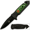Check out this awesome Classic Black and Green Trigger Assisted Tactical knife! It is 8 inches long and features a drop point blade, with emblem inscribed. Its bottom hilt has a seat belt cutter and window breaker, which is very convenient. The blade is 3.25 inches long, with thumb stud included. Its handle is also detailed in tactical flair with emblem inserted.