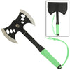 Perfectly balanced from head to handle for throwing accuracy, this axe is constructed of one solid piece of black anodized stainless steel. Both heads feature silver linings along with weight reducing cutouts. The handle includes a Zombie Killer Green nylon cord wrap for a solid and secure grip along with a lanyard hole at the tip. Axe comes with a FREE high quality Velcro fastened sheath.