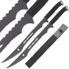 Set of two! Sleek, dangerous, tactical, Stealth! The blade features hi-tech cut outs, teeth-like serrations, and a sharp piercing point. It comes in sets of two. The nylon cord wrapped handle adds a sure grip for easy maneuverability. It includes nylon blade sheath. This set is both stealthy and effective. The shape of the blade is designed for making precise cuts and the full tang is 100%.