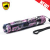 The stun gun flashlight’s enhanced Cree bulb has 100,000 hours of burn time and features an aluminum reflector system to maximize the 140 lumens of pure white light, illuminating the darkest corners or disorienting an attacker.