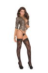 Lace thigh high with back seam and lace 'stay up' silicone top.