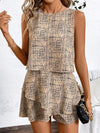 Elegant and casual resort two-piece set crafted from a polyester and cotton blend designed to provide the perfect balance of durability and softness. This combination ensures the material is lightweight and breathable, perfect for warm climates or relaxed conditions. Made from non-stretch fabric, this set retains its structure and polished look, perfect for a casual outing or a laid-back vacation.