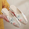 Elegant Women Satin Embroidered Flat Mules Slippers