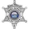 Elvis was made an honorary officer in departments across the United States. This police quality badge is a replica of the one presented to him by the Shelby County Sheriff's Department; making Elvis an Honorary Chief Deputy. This law enforcement quality Badge measures 2 3/8' x 2 3/4'. Features a safety pin on the back of the badge.