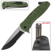 Emergency Code Green Serrated Spring Assist Knife Built In LED LIGHT - Tophatter's Guns'N'Weapons Store