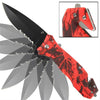 The Red Realtree Camo Emergency knife offers a magnificent aluminum colorful textured grip handle with double wall reinforcement. It has a beautiful finger curved on the belly of the handle which makes a better grip when using. The pommel includes an emergency glass breaker which can break any tough glass in case of an emergency. Another great emergency tool accompanying this item is the seat belt cutter which comes sharp and ready for emergency use. Use the flipper on the handle to assist this knife with a smooth opening. It comes complete with a silver pocket clip for easy accessibility to your knife.