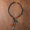 Ethnic Wood Leaf Pendants Necklace