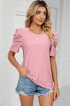 Eyelet Round Neck Puff Sleeve T-Shirt