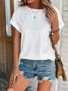 Eyelet Round Neck Short Sleeve T-Shirt
