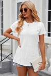 Eyelet Slit Round Neck Short Sleeve T-Shirt