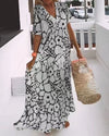 The Women's Summer Maxi Dresses feature a fashionable abstract print floral design with short sleeves and ankle-length hem. These dresses are made of polyester with medium stretch elasticity, and are available in black, green, red, and yellow.