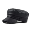 Fashion Unisex PU Leather Military caps Spring Autumn Sailor Hats for Women Men Black Grey Flat Top Captain Cap Travel Cadet Hat
