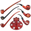 Gather the Fellowship at your own Council with this superb six-pipe bundle and accompanying stand! The Shire Pipes x The Lord of The Rings™ Fellowship Pipes & COUNCIL OF ELROND™ Pipe Stand Bundle includes a collection of pipes representing members of the Fellowship and the reason they ventured out; the One Ring. The circular stand holds all six pipes at a round-table meeting, a display of the free races of Middle Earth banding together to defeat their common enemy. This grouping makes a great choice for any enthusiast to enjoy a variety of pipe styles one-by-one, or pass around to your own companions puffing on some Longbottom Leaf together.
