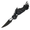 The Fire and Steel dragonrider knife is a fully functioning folding knife that locks into place when blade is unfolded. Easy to use, fold and carry. 21 cm. Stainless steel blade. Comes sharpened and fully functional.