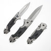 The Fire and Steel - Shadowstrike Folding Knife is a sleek, durable tool designed for functionality and versatility. With a sharp 10 cm blade made from 2Cr13 stainless steel and a nylon fiber-coated handle for a secure grip, this knife measures 22.8 cm when open and is perfect for both outdoor adventures and everyday tasks. It features a seat belt cutter, a window breaker at the tip of the handle, and a sturdy metal belt clip for easy carrying. Combining practicality with a modern black and grey design, the Shadowstrike Folding Knife is an essential tool for emergencies and utility alike.