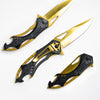 The Fire and Steel - Spear Point Folding Knife is a versatile and stylish tool, perfect for outdoor adventures, everyday carry, or collectors seeking a unique addition to their collection. Crafted from durable stainless steel, this knife features a sharp spear-point blade available in three stunning color options: black, gold, or plasma rainbow. With an overall length of 21.7 cm when open and a 9.8 cm blade, it offers exceptional precision and reliability for various tasks.
