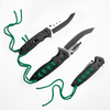The Fire and Steel - Viper Lace Folding Knife is a versatile tool designed for outdoor enthusiasts and survivalists alike. With an overall length of 21.5 cm when open, this knife features a sharp 3Cr13 stainless steel blade measuring 9.5 cm, making it perfect for cutting, slicing, and general utility tasks. The durable steel handle is wrapped with green paracord, not just for a secure grip but also as a practical feature that can be unraveled and used in survival situations, such as creating a makeshift spear. Weighing 230 g, the knife is sturdy yet portable, complete with a metal belt clip for easy carrying. This folding knife combines functionality and rugged design, making it an essential addition to your gear.