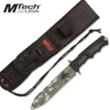 This is a brand new Fixed blade Knife with a nylon sheath. MTech Assault VI. 12 1/2" overall. 6 3/4" 440 stainless green digital camo finish blade with partially serrated top and bottom edges. Full extended tang with lanyard hole that can be used as glass breaker. Fingergrooved black rubberized handles with black sure-grip inserts. Stainless guard. Black nylon belt sheath with front accessory pocket, protective insert and leg ties.