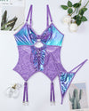 Flash Gradient Laser Cross Tie Waist Lingerie Sets