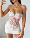Floral Printed Lace-Up Strapless Tube Top