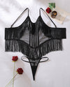 • Sheer mesh halter bodysuit with Fringe Trim .