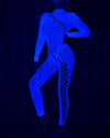 • Glowing at Night These fishnet bodysuit will glow at night. After sunlight or UVlight, the outfit will change from white to fluorescent blue.