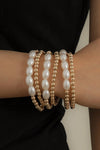Gold Plated Pearl Beaded 6 Pcs Bracelet Set