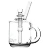 The GRAV Coffee Mug Pocket Bubbler has a fun and quirky shape, designed to resemble the classic drink mug. This pipe has a top mounted slide connection and an angled straw mouthpiece. The handle is fully functional too; it's easy to pick up and take a rip (instead of a sip). This compact piece is simple and stylish, perfect for those wake-and-bake tokes in the morning. This bubbler is outfitted with a fixed fission diffusing downstem and a 10mm male cup-style herb slide.