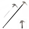 This is the 36" Dragon Gentleman's Walking Cane sword that features a Zinc Handle. The shaft conceals a durable 12.25 inch 440 stainless steel dagger style blade which offers our customers protection when walking. The cap and tip of the shaft is a stainless steel with a rubberized tip for balancing when walking.