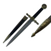 Combining eye-catching style with functional design, this historical dagger replica makes an excellent addition to any weapons collection. The Greenman Medieval Dagger features lovely ornamentation on its guard, pommel, and sheath. The medieval dagger has a round pommel that displays an eagle, winged lion and bird designs with abstract patterns along the guard, and foliate Greenman designs on the scabbard. The stainless steel dagger is made with a black nylon fiber handle and zinc alloy details. Whether you are looking for a display dagger or a weapon to accompany a medieval ensemble, this Greenman dagger makes a great choice!