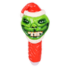 The Grinch Hand Pipe is made of borosilicate glass with 3D sculpted enamel on the outside that is UV reactive. It is decorated with the Grinch's face complete with a malicious, foreboding grin. A carb hole is built into the left side of the bowl.