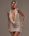 Halter Neck Draped Mesh Diamonte Mini Dress