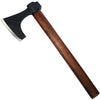 A battle axe is an axe specifically designed for combat. Knights often fought with battle axes when they were on foot. The battle axe struck with force could apply significant injury to a knight in armor. The weapon was primarily used as a cutting weapon and capable of cutting off the limbs of an enemy in one stroke. The handle is constructed of wood that has been stained. This one handed axe can be used for display or the finishing accessory to a period costume or re-enactment.