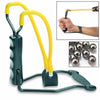 Shooting at a distance of 100 yards, this ergonomic design slingshot is made with a complete steel framing. This sling shot features a molded handle grip topped with durable surgical latex power bands. It folds easily to fit into your pocket. If offers a folding wrist lock for more support which helps with steady aim for more accuracy. Its made for ages 14 and up. This Slingshot comes complete with 8 starter steel marbles.