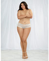 Heart stretch lace panty with open crotch and large open-back heart detail. 90% Nylon, 10% Spandex. From Dreamgirl.White, 1X. Cup: D/DD. Bust: 40in.-44in.. Waist: 36in.-38in.. Hip: 42in.-44in..All sales of DG BRANDS catalog products must occur through the retailer's own E-commerce site or physical store. This restriction includes sales through online marketplaces (such as Amazon) and internet auction sites (such as eBay). All DG BRANDS catalog products are subject to MAP (Minimum Advertised Price) agreement.
