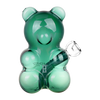 Cute, cuddly, and oh-so-sweet, enjoy a nibble from the Hemper Gummy Bear Bong! Made from teal borosilicate glass, this unique water pipe is fashioned into the shape of a plump little gummy bear. Light the bowl from one side and sip the smoke from the opposite ear's built-in mouthpiece. Enjoy a bit of rumbly water filtration thanks to the fixed diffused downstem within the chamber. Each bong includes a 14mm male herb slide.