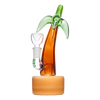 Kick back poolside for a sweet retreat with the Hemper Palm Tree Bong! Made from quality borosilicate glass, this water pipe is shaped like a lush n' leafy island palm leaning back in the breeze. This bent profile allows you to take a toke more comfortably, keeping your face away from the flame. A sturdy puck base supports the whole tree and has a matte, brushed bronze color finish that mimics a sandy beach landscape. Smoke travels through the stemless joint connection into the perforated percolator for water-cooled hits and a smooth finish. Each bong from Hemper comes packaged in a themed gift box.