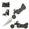 This functional folding knife is equipped with a 3.4" blade constructed from stainless steel which folds out from bottom, linerlock.. The zinc aluminum handle is fashioned into a realistic cycle and goes one step further by offering a working LED Headlight that is activated by the button located on the seat.