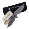 The blade of this spring assisted pocket knife is constructed of strong D2 steel into a traditional drop point style, and features a light stonewashed finish. The handle is made from 2 matte silver anodized solid steel mounts and features anodized bronze-toned hardware, which includes a trusty pocket clip. This knife is simple yet effective, and cuts though tough materials like a slice of cake! If you want a knife that is sure to deliver without being too flashy, this right here is the knife for you. Included with your pocket knife is a FREE black zip up carrying case and convenient cleaning cloth.