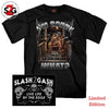 Gun Rights 'I'm Sorry You're Coming For My What?' around a rebel skeleton sitting on his porch holding a shotgun, with the date 1791 on the railing. Original artwork screen printed on the front of a 100% heavyweight cotton black t-shirt.