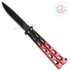HEAVY Butterfly Knife Big Fat Balisong (similar to our Jaguar model) - Fade Black to Red-ish Plain. Featuring a 'beefed up' version of the classic riveted design... this Budget Balisong is one FATKnuckle Banger, with cast skeletonized handles. You will find yourself saying 'Oh it hurts so good' when you feel the weight of this big, thick, HEAVY swinger.