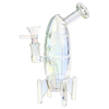 Elevate your daily sesh above the ordinary with the Journey To The Stars Electroplated Rocket Bong! Made from borosilicate glass, this water pipe has a flashy electroplated finish. It is designed to resemble an upright rocket that's ready for launch, all it needs is some firepower! Smoke travels down the fixed interior slitted downstem for a rumble of water diffusion while the angled neck keeps the flame away from your face. Each bong includes a 14mm male herb slide.